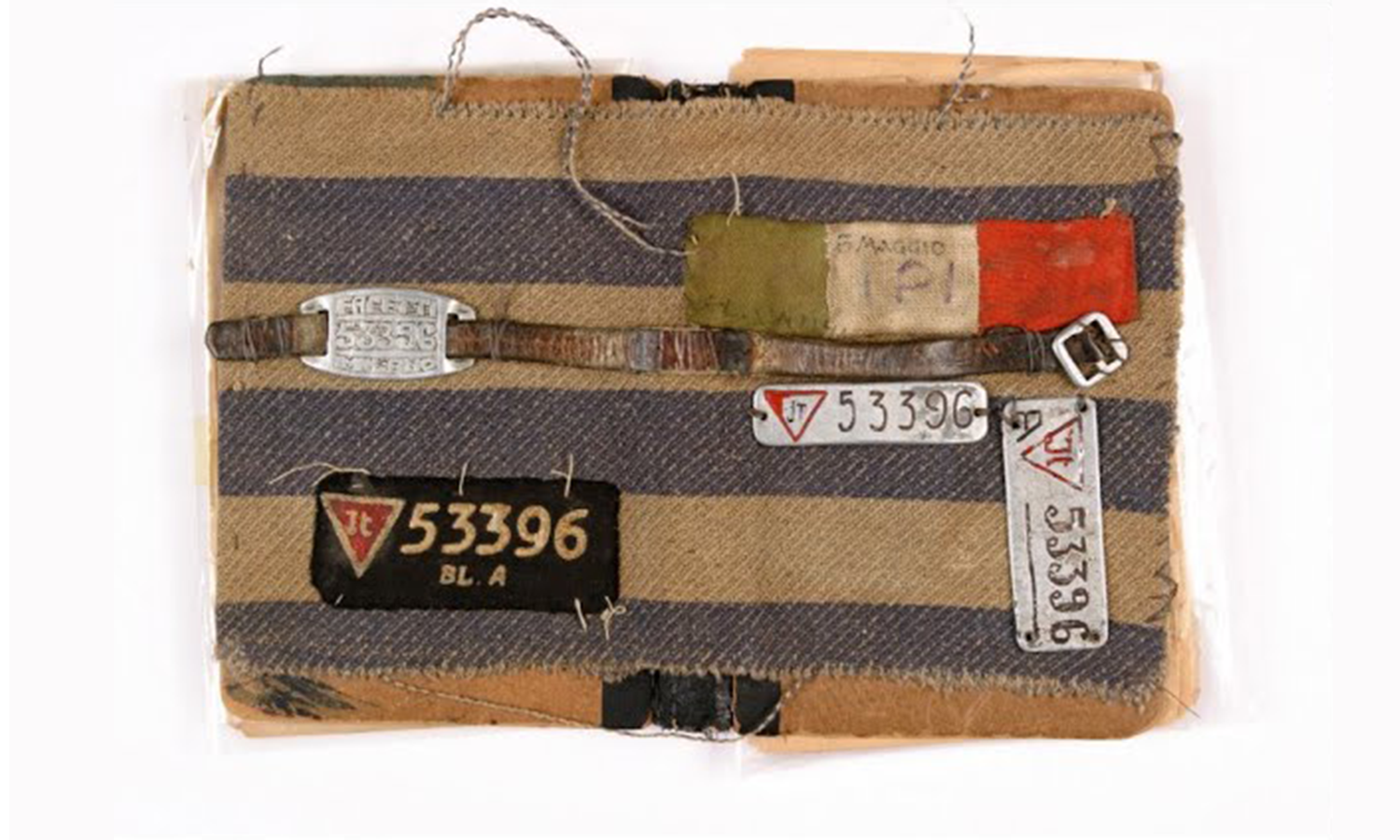 Ricoperto con il tessuto dell’uniforme da deportato.